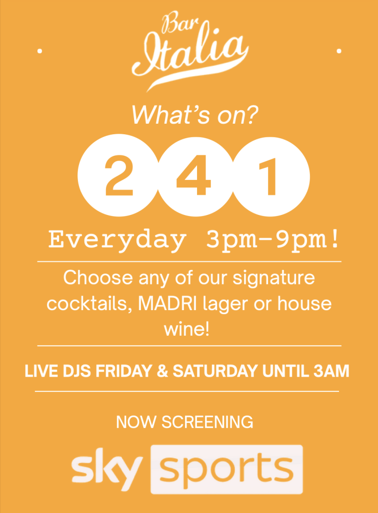 Welcome to Bar Italia Uxbridge, where every visit begins with our exquisite, carefully-crafted house cocktails. Then, experience a unique fusion of Italian culinary tradition and the vibrant energy of London, to the soundtrack of our in-house DJ.